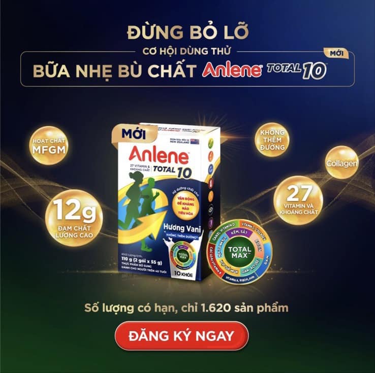 1 BƯỚC ĐĂNG KÝ TẠI Anlene Vietnam - NHẬN MIỄN PHÍ NGAY BỮA NHẸ BÙ CHẤT ANLENE TOTAL 10 MỚI