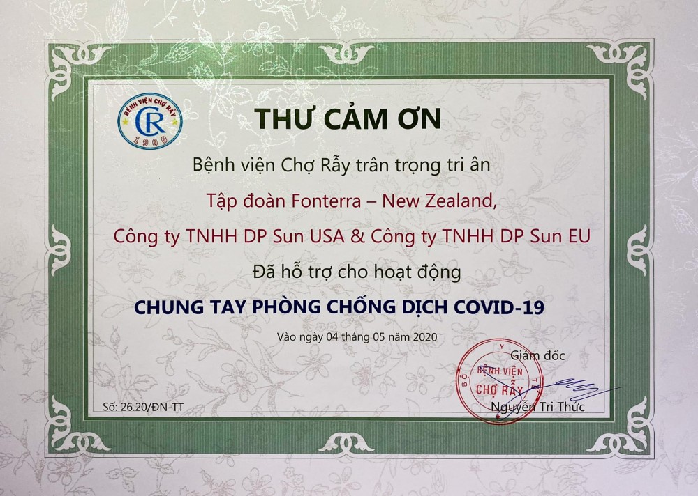 Thư cảm ơn từ Bệnh Viện