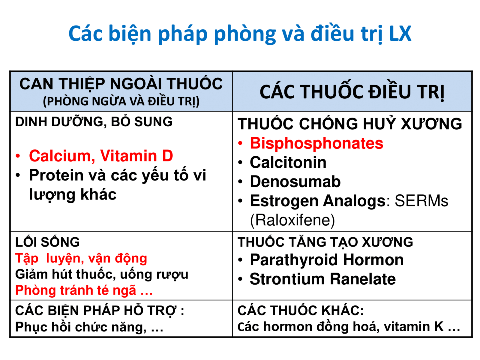 CÁC LỰA CHỌN ĐIỀU TRỊ BỆNH LOÃNG XƯƠNG Ở NGƯỜI CAO TUỔI