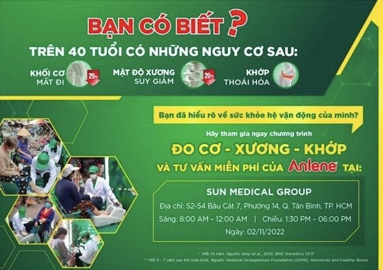 CHƯƠNG TRÌNH ĐO CƠ - XƯƠNG - KHỚP VÀ TƯ VẤN MIỄN PHÍ CỦA ANLENE